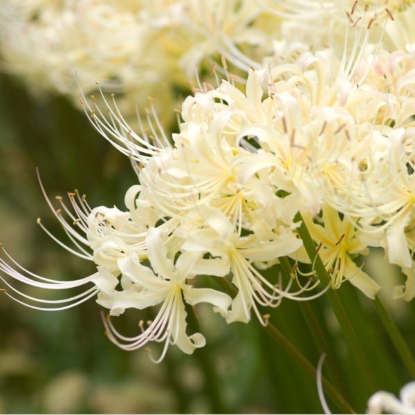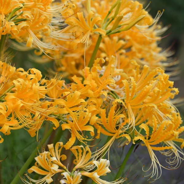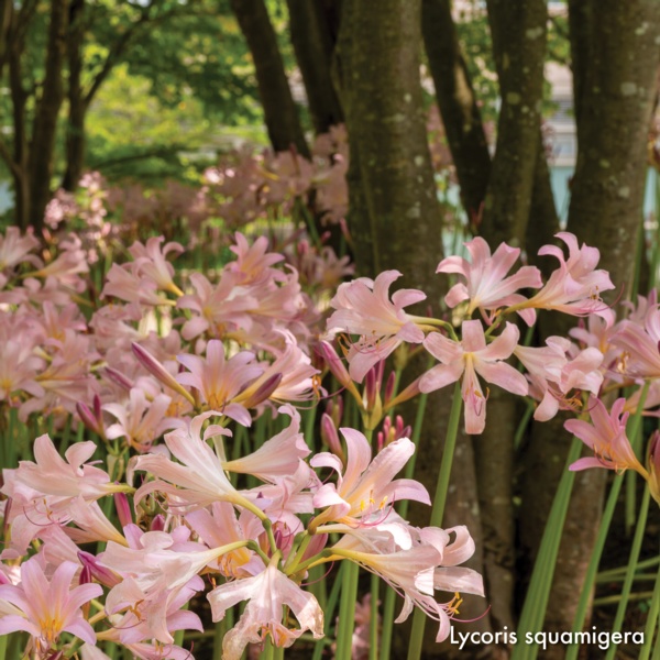 Once established, lycoris are care-free and long-lived. Lycoris blooms are said to resemble spider legs, hence the name 'Spider Lily'. The names 'Resurrection Flower', 'Surprise Lily', 'Magic Lily' or 'Naked Ladies' are from the leaves disappearing in summer with the flower spikes seeming to rise from the dead in late summer.