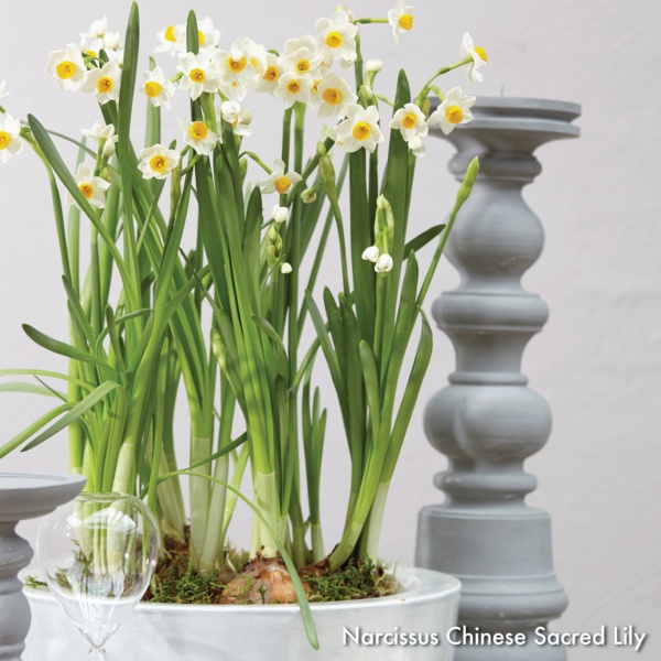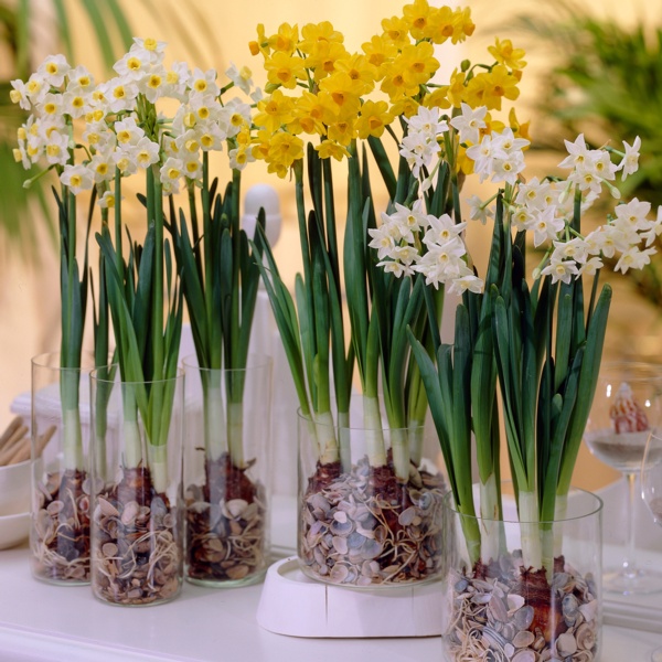 Narcissus are excellent for growing indoors in containers. Narcissus paperwhites are the most well known of indoor forcing narcissus. These flower bulbs will grow in soil or water with rocks or decorative stones. Expect delightfully fragrant blooms indoors during the dreary winter months.