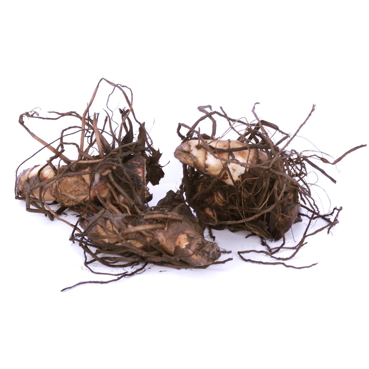 After frost has damaged the foliage, dig up clumps, trim foliage, shake off soil and divide into 3-5 eye rhizomes. Place clumps in a plastic bag with peat moss to maintain a nice moisture balance. Add air holes to the sides of the bag to allow a small amount of air flow during storage. Store in a cool, dark place at 45-55ºF during the winter. Be sure to check on them a few times to make sure they are not too moist or too dry.