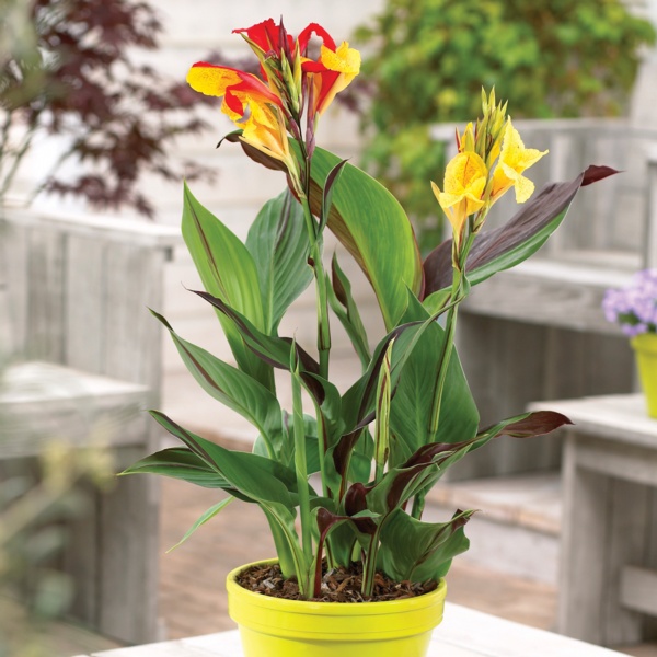 Plant cannas in large containers to add easy, tropical color to your patios and decks.
