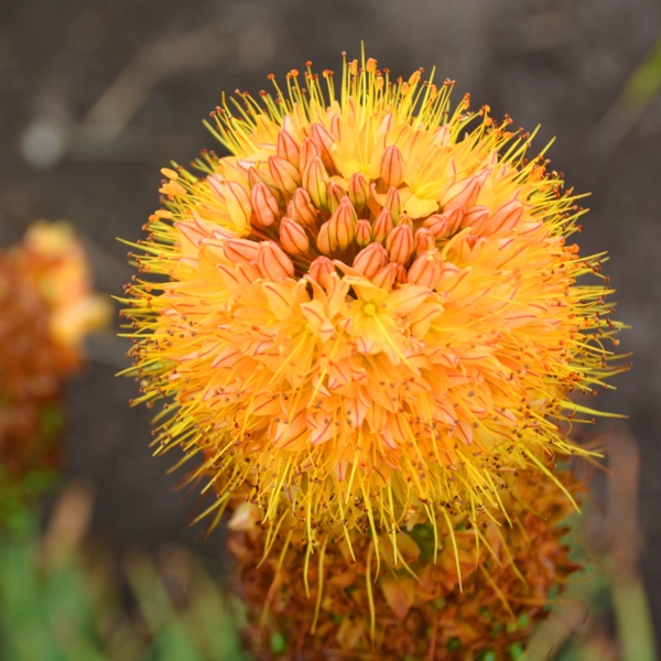 This native of central Asia is known for its unique, bottle brush flower spires of densely packed blooms that range in colors of orange, pink, white and yellow. These flower spikes reach heights of up to 8-10' tall above large clumps of strap-like foliage.