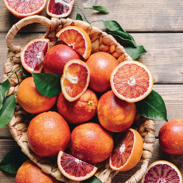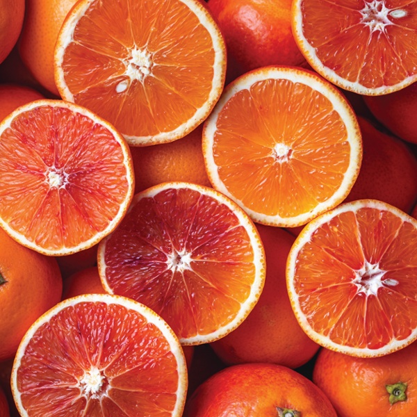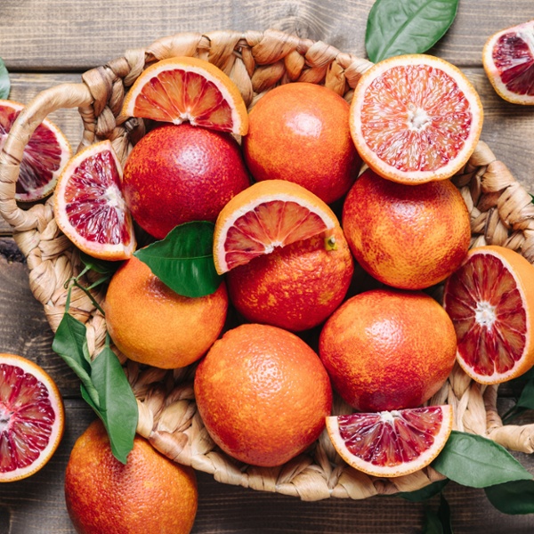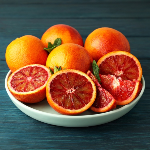 Blood oranges look like normal oranges on the outside but have a stark blood-red fleshy pulp that is sweeter that most other varieties of oranges. Blood oranges also have very few seeds and is easy to peel compared to other citrus fruits.