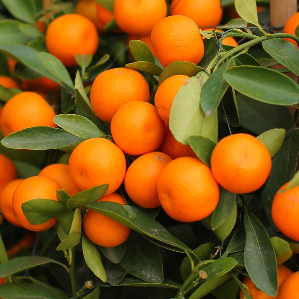 Calamondin is a cross between a mandarin orange and a kumquat. Often known as a miniature orange. Calamondin trees produce fragrant flowers and small tangerine-like fruit. Grown more for ornamental purposes than for eating. The whole fruit of a calamondin is eaten - peel and all - and is very tart.