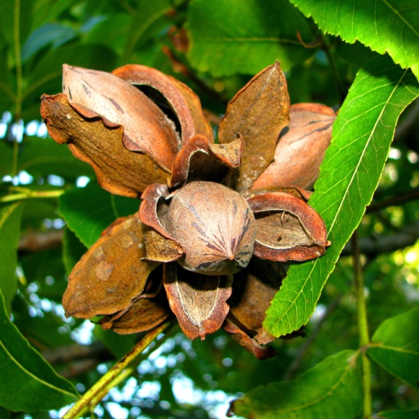 The Pecan Tree is native to North America and grows well from Illinois to Florida and across the south to Texas. The tree may reach an incredible 70-100' in height and 40-80' in width. Pecan nuts are much enjoyed. Pecans are heart healthy, containing 87% unsaturated fatty acid. They are high in vitamins and minerals, containing over 19 important ones. The pecan offers antioxidant properties that reduce LDL cholesterol - the bad type - build up.