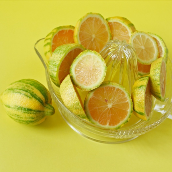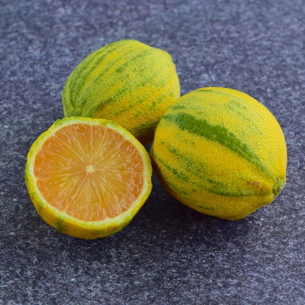 The variegated leaves make the Pink Variegated Lemon tree a beautiful ornamental as well as a fruit producer. Lemons squeezed into water promote hydration and are a good source of vitamin C. Lemons support weight loss and improve skin quality among other health benefits. Lemons are used as flavorings in cooking and are popular sliced for beverage garnishing.