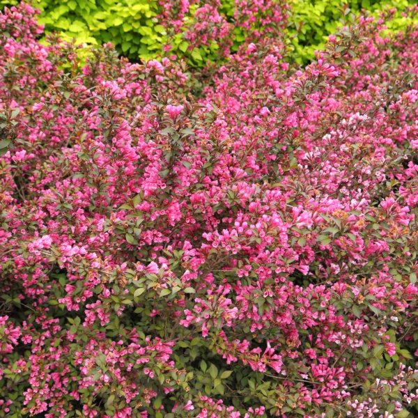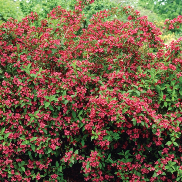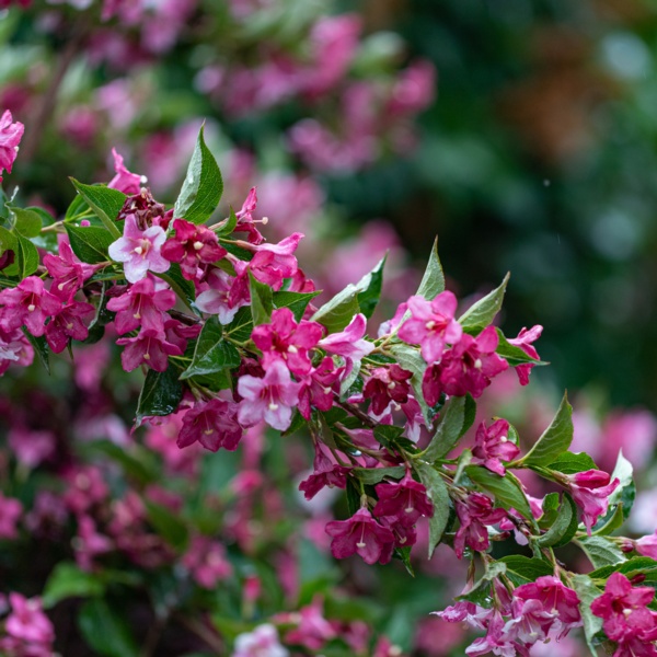 Weigela is a tough, easy to grow arching flowering shrub that grows roughly around 4-6' high with approximately the same spread. Excellent for general garden use, accent, mass planting or hedge.